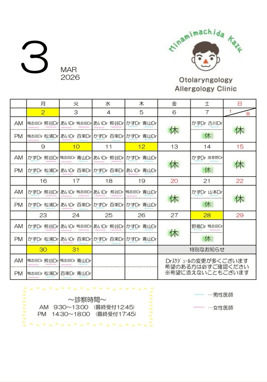 2026年1月13日より火曜日午前はかず先生の代わりに、鴨志田先生(元衣笠病院部長)の担当となります