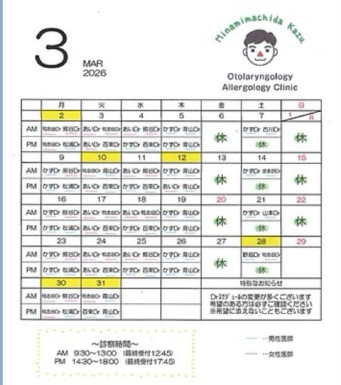 3月診療スケジュール